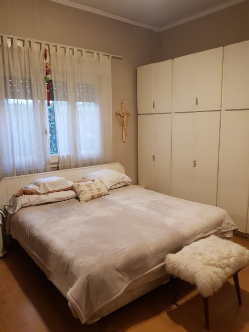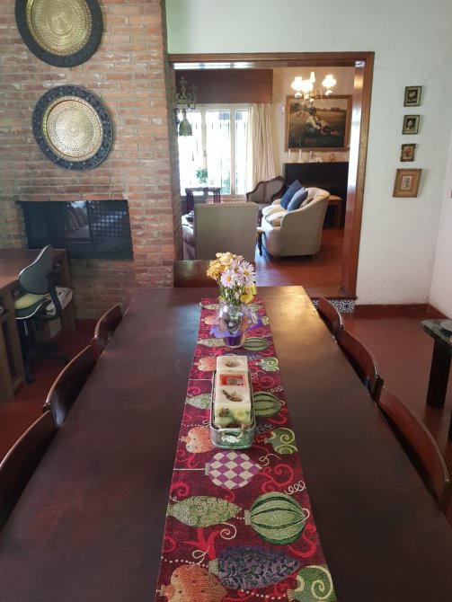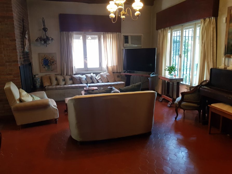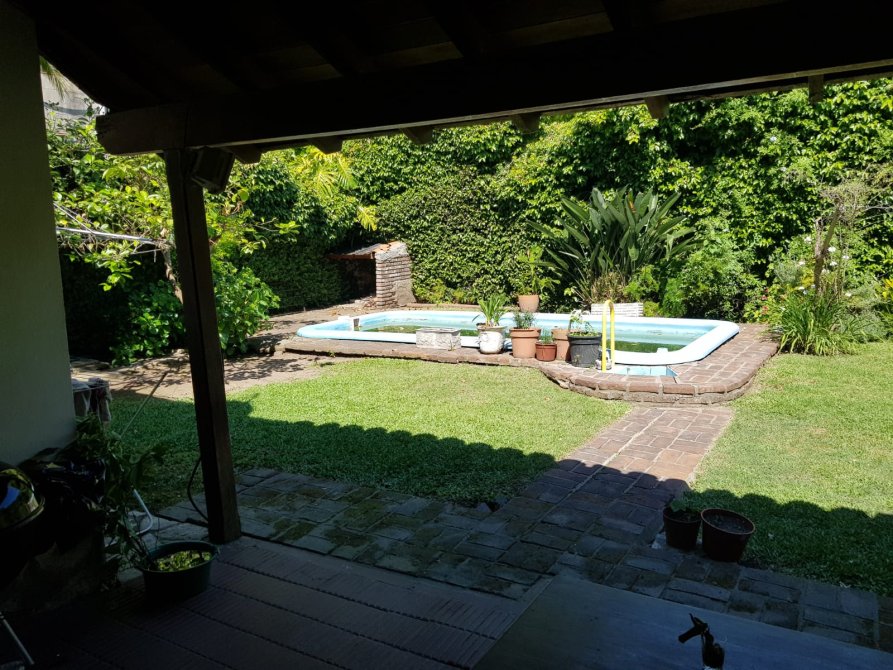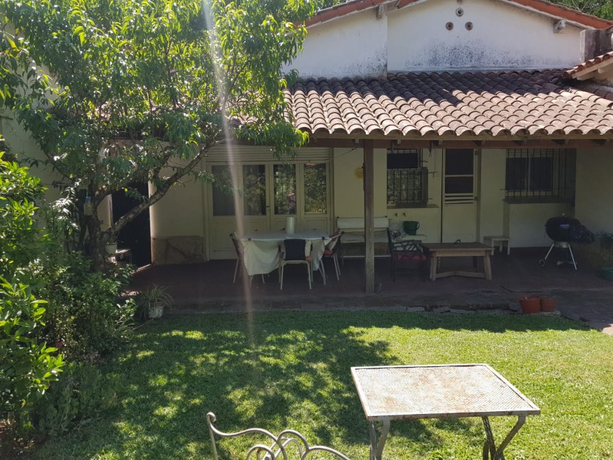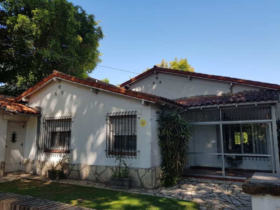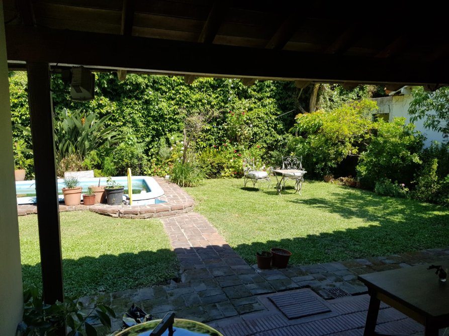 El Chalet está construido en 1 planta y cuenta con 3 dormitorios, cuarto de servicios con toilette, baño completo, living, comedor, cocina, jardín con pileta, cochera cubierta para 2 autos y descubierta para 3, además cuenta con una entrada independiente a una segunda vivienda (monoambiente con cocina y baño).