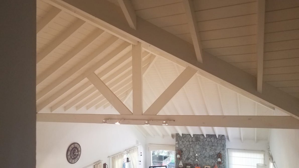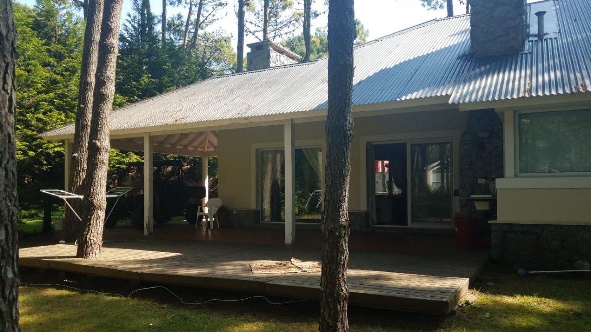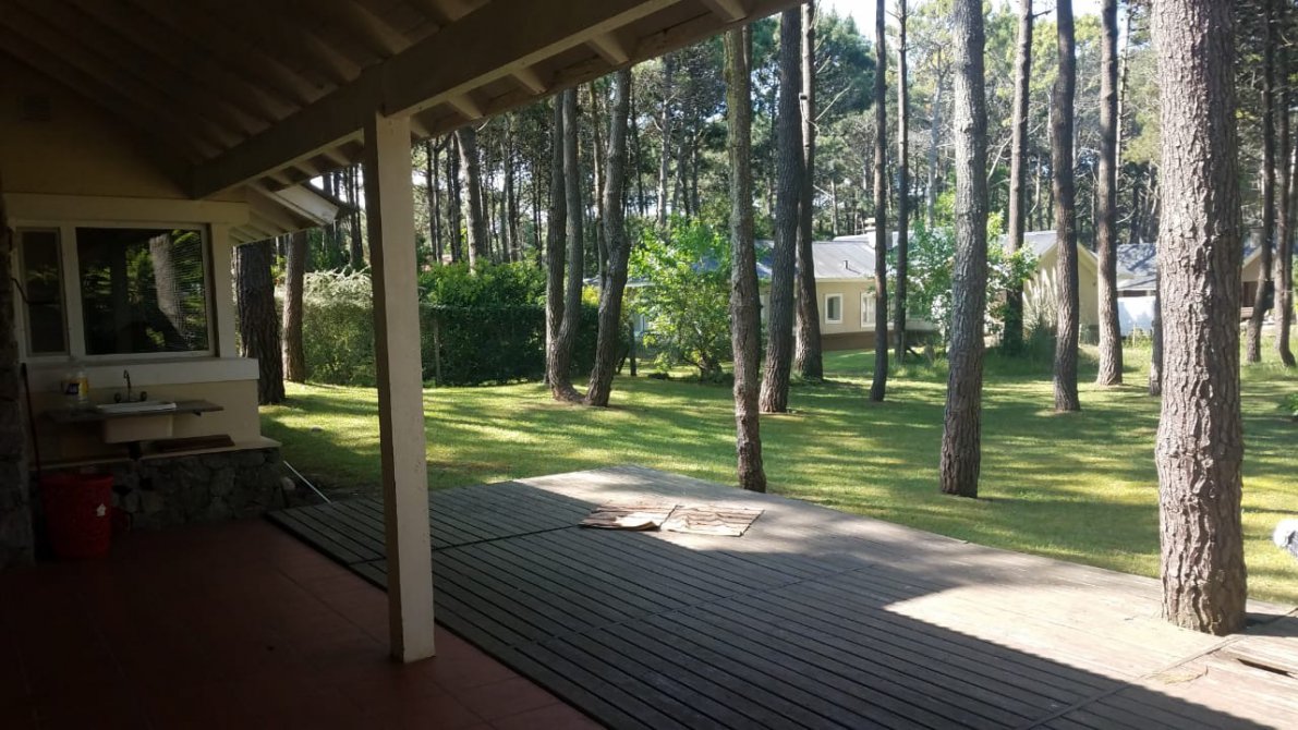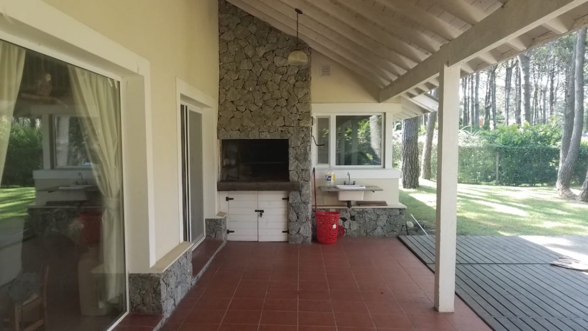- Galería con parrilla y deck de madera.
