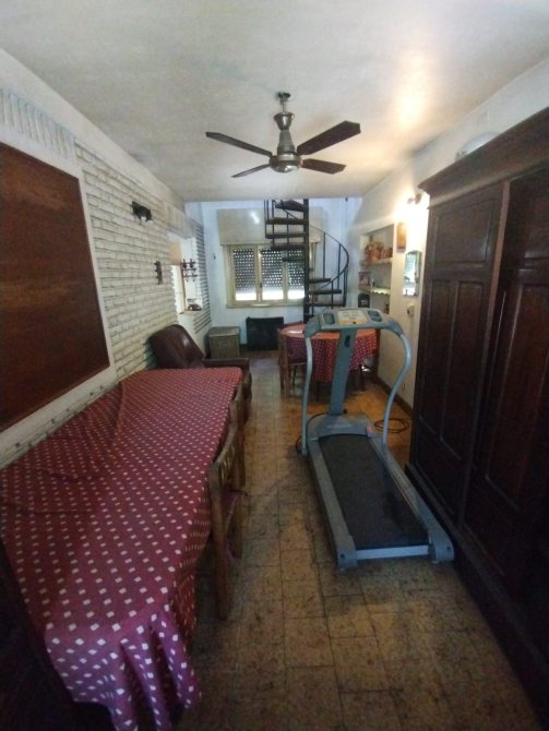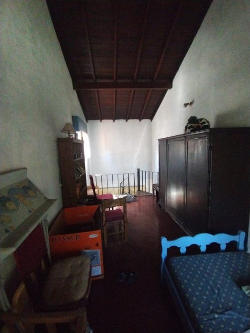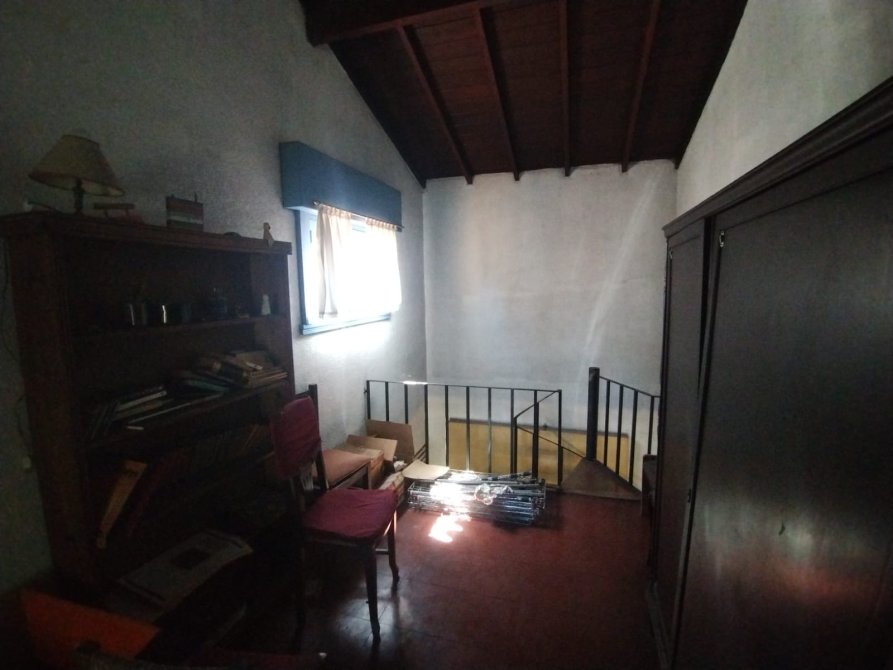 Además, la planta baja incluye un amplio ambiente que anteriormente funcionaba como garaje cubierto, con un portón de madera, brindando flexibilidad de uso según tus necesidades. Una escalera caracol te llevará al primer piso, donde serás recibido por un amplio dormitorio muy luminoso, con ventanas que ofrecen vistas al frente y al lateral.